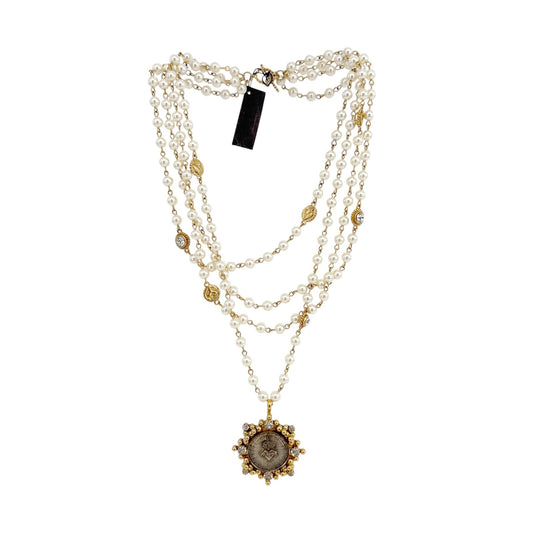 VIRGINS SAINTS & ANGELS VSA Magdalena Pearl with Cloister Sacred Heart Medallion