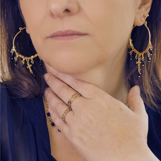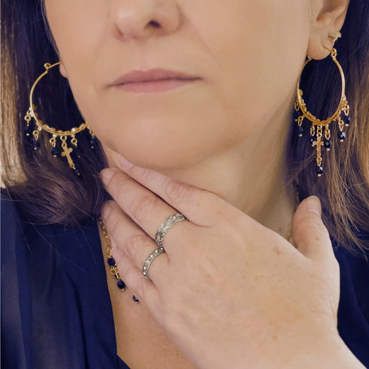 VIRGINS SAINTS & ANGELS VSA Vine Earrings with Cross in Gold & Black Diamond
