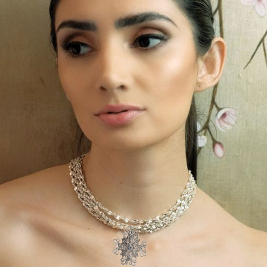 VIRGINS SAINTS & ANGELS VSA Love Chain Necklace with Electra Medallion in Silver