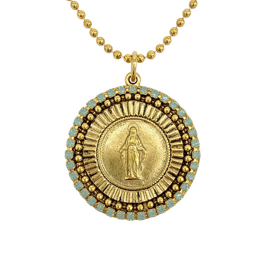 VIRGINS SAINTS & ANGELS VSA Disco Virgin Charm Necklace in Gold & Pacific Opal
