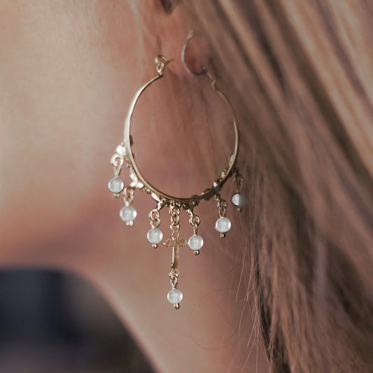 VIRGINS SAINTS & ANGELS VSA Esme Hoop Earrings in Silver & Pearl