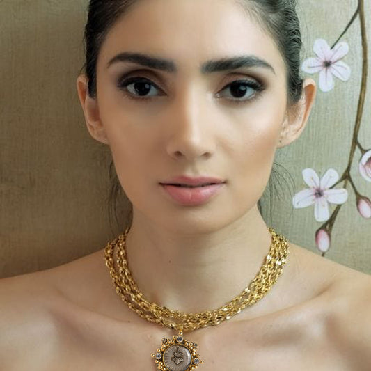 VIRGINS SAINTS & ANGELS VSA Love Chain Necklace with Sacred Heart Medallion in Gold