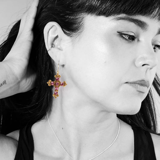 VIRGINS SAINTS & ANGELS VSA Addie Earrings Gold & Fuchsia Pink