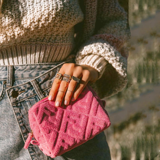FENDI FF 1974 Cosmetic Pouch Zucca Embossed Terry Cloth