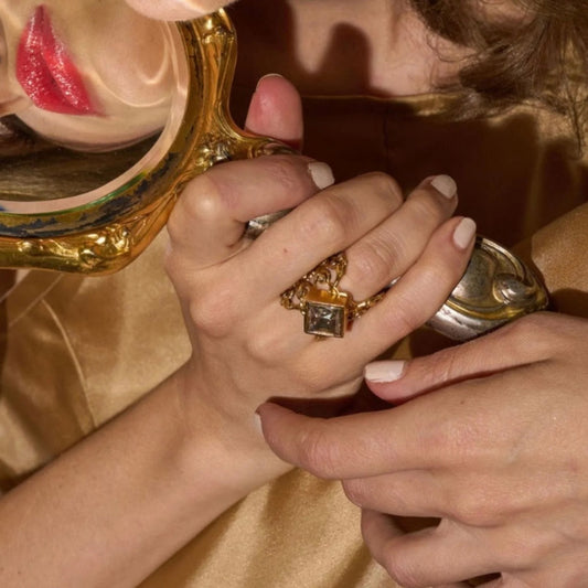 VIRGINS SAINTS & ANGELS VSA Retablo Square Framed Charm Ring in Silver 7