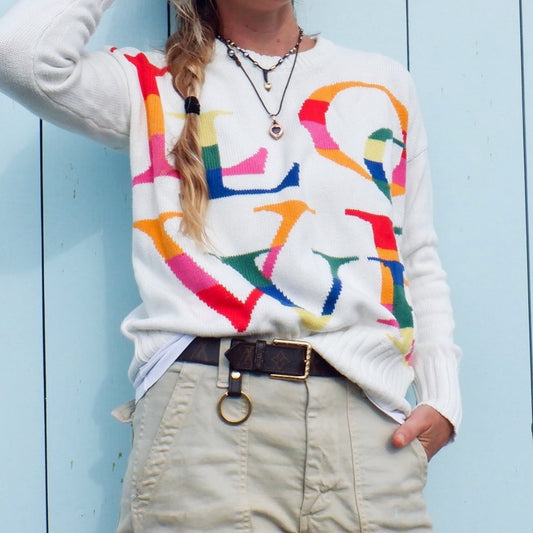 MINNIE ROSE Multi Color LOVE Crew Neck Sweater S