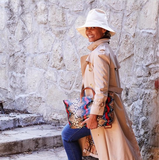 CLARE V. Attache Tote in Garden Snake with Strap