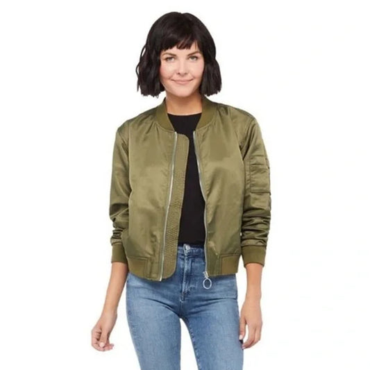 GOOD AMERICAN Bomber Jacket in Green Satin XS