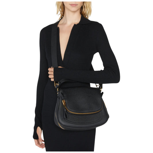 TOM FORD Jennifer Medium Double Strap Bag in Black Grained Leather