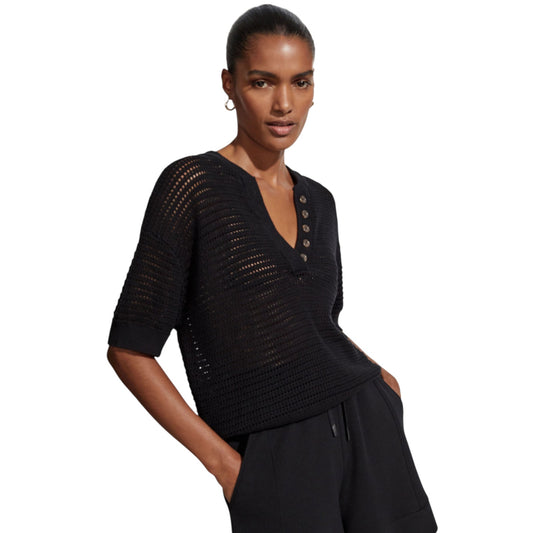 TORY BURCH Mesh Polo Sweater in Bondi Blue L