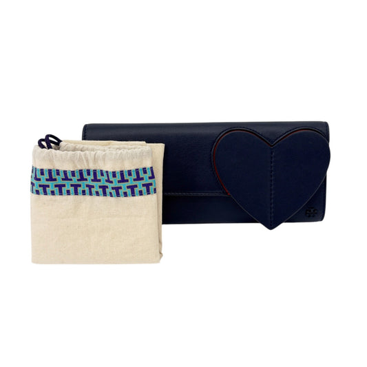 TORY BURCH Leather Heart Clutch in Tory Navy