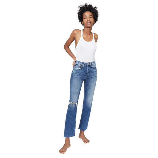 RE/DONE Ultra High Rise Stove Pipe in Vintage Indigo Destroy 24