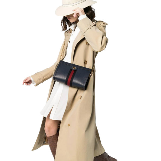 GUCCI Ophidia Chain Shoulder Bag Textured Calfskin Web in Blue Agata