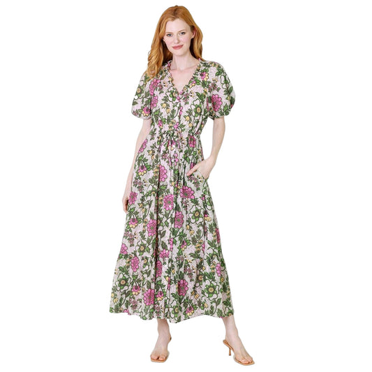 BANJANAN Cotton Poppy Dress in Freyja Flower Lilac Sachet XS