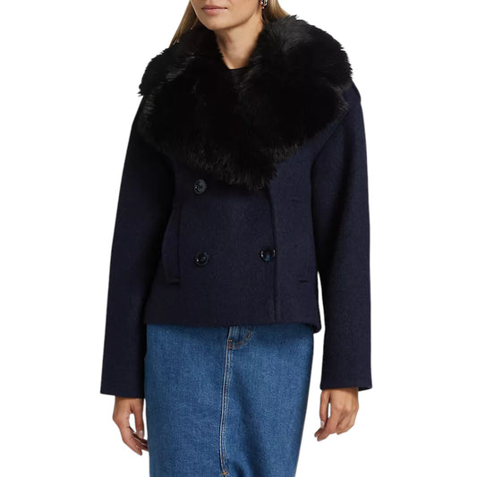 MERCER COLLECTIVE Georgia Faux Fur Collar Double-Breasted Peacoat S
