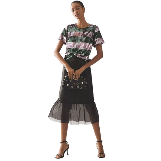 ANTHROPOLOGIE Maeve Short-Sleeve Sequin Striped Top S