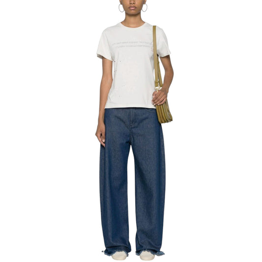 GOLDEN GOOSE Aged White Cotton Tee with Print & Embroidery M