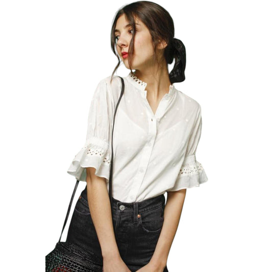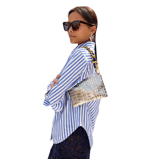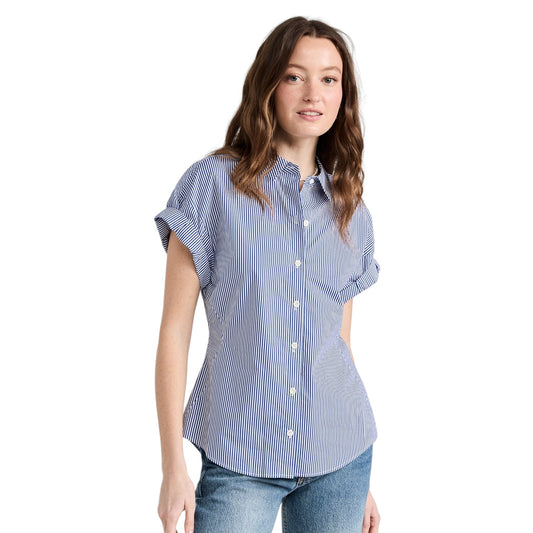 FRAME Button Down Striped Rolled Sleeve Top S