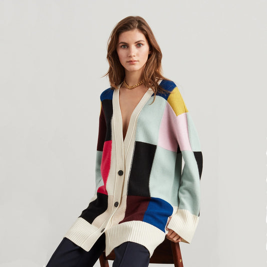 ST. JOHN Colorblock Cashmere Blend Cardigan M