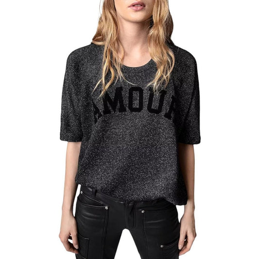 ZADIG & VOLTAIRE Portland Amour Glitter Top in Black XS