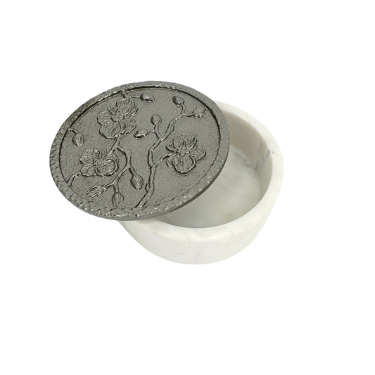 MACKENZIE-CHILDS Black Silver Plated Trinket Box with Check Knob