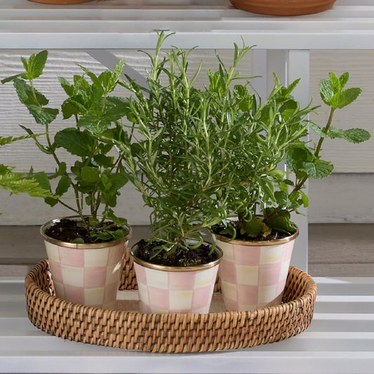 MACKENZIE-CHILDS Herb Pots in Rosy Check Set of 3