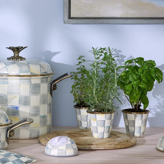 MACKENZIE-CHILDS Herb Pots in Sterling Check Set of 3