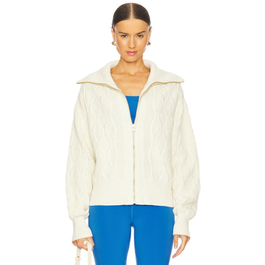 VARLEY Lando Full Zip Knit Sweater in Birch XS