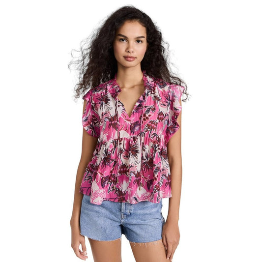 LOVESHACKFANCY Careen Beaded Tie-dyed Cotton Short In Cherry Fizz XS