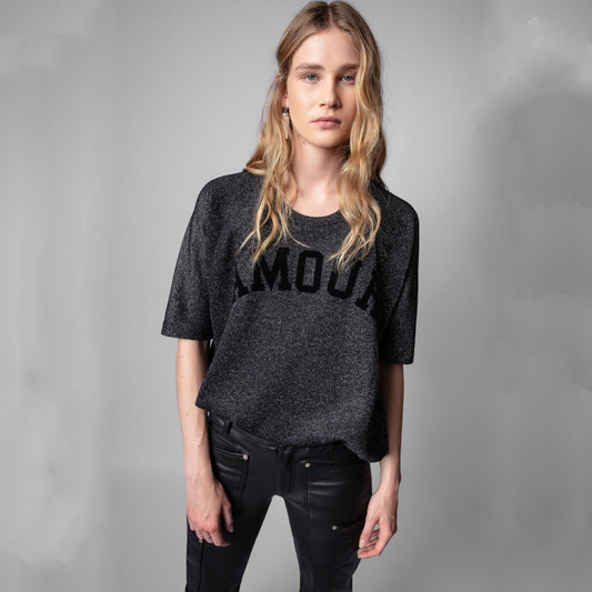ZADIG & VOLTAIRE Portland Amour Glitter Top in Black XS
