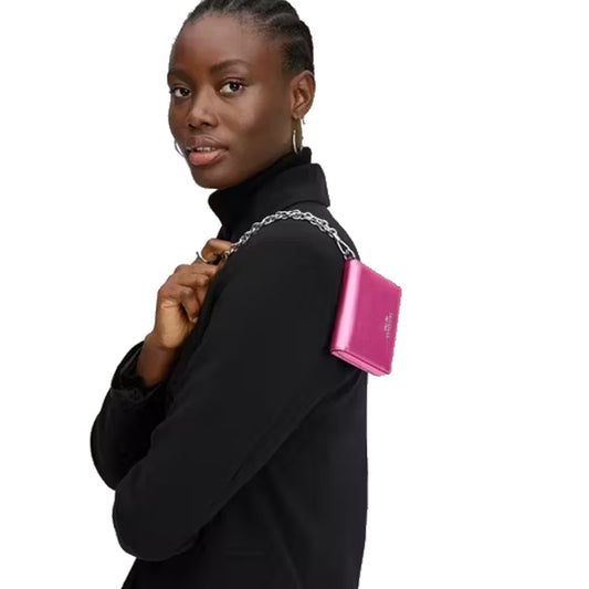 KATE SPADE Natasha Metallic Pebbled Leather Chain Compact Wristlet in Bikini Pink
