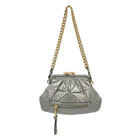 CLARE V. Estelle Clutch Specchio Puffy Woven & Mini Link Shoulder Strap Silver