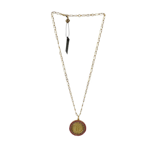 VIRGINS SAINTS & ANGELS Disco Virgin Charm Necklace Gold & Fuchsia