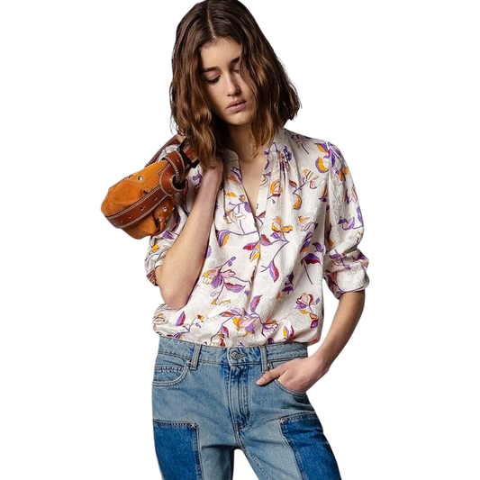 ZADIG & VOLTAIRE Tink Jac Cut Flowers Silk Blend Shirt XS