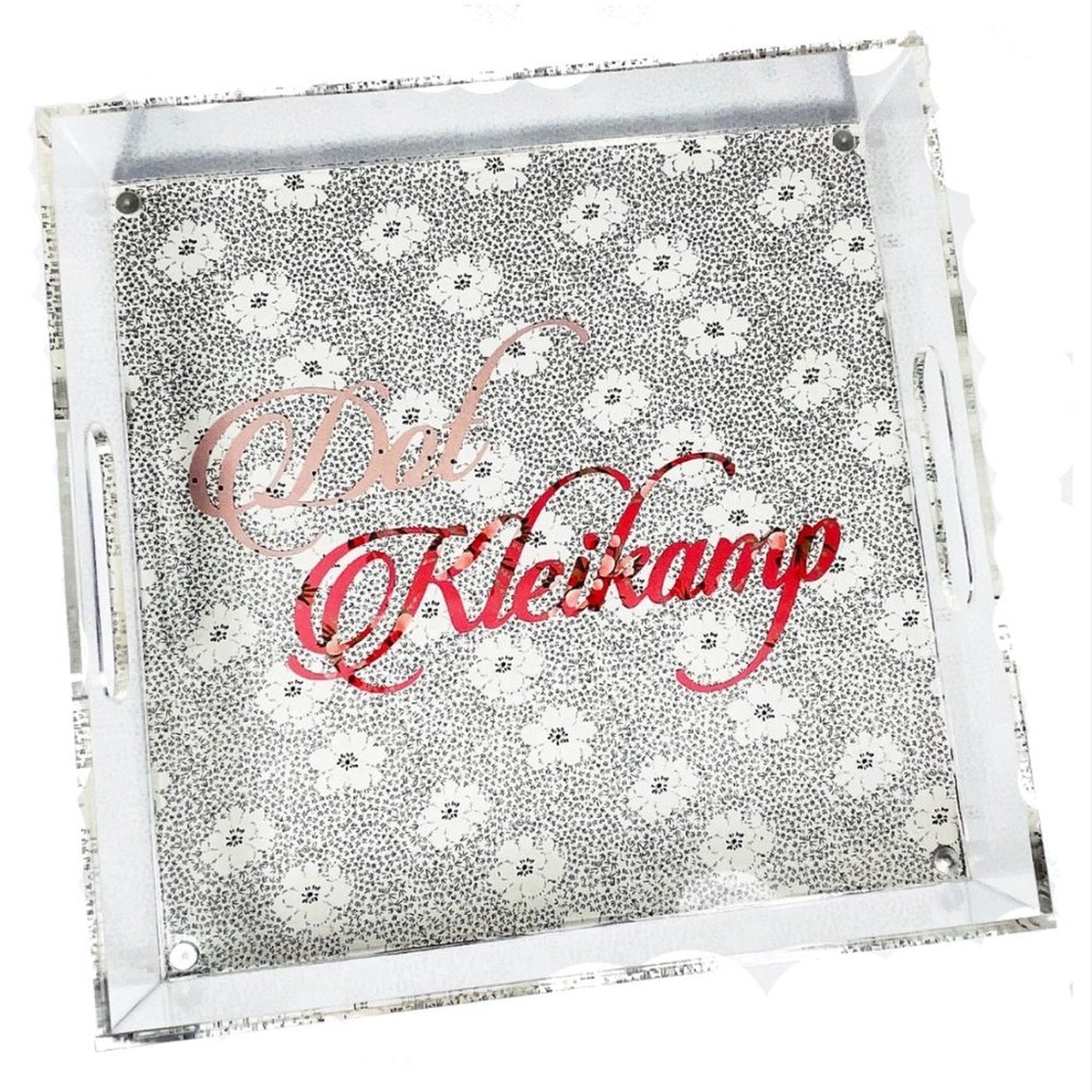 The 12" Square Insertable Tray from Huang Acrylic is an elegant tray for home or office use. Add photos, meaningful art, or a special message to personalize the tray by using the insertable layer which keeps inserts in place with powerful magnets.