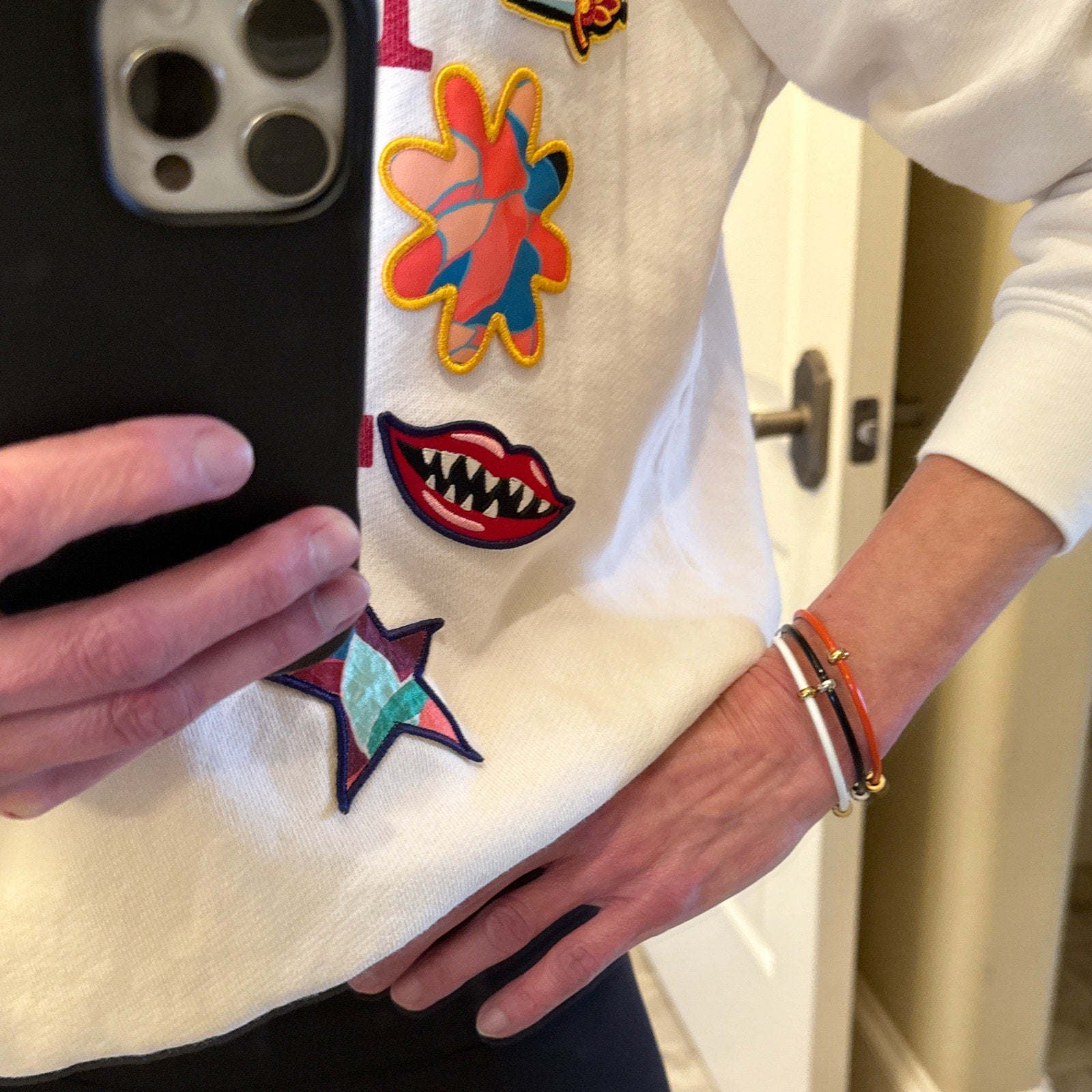 *The images depicting all three colorways serve as a demonstration. This listing pertains to a single bangle, each is sold individually. Available colors: Coral Red, Black, & White.