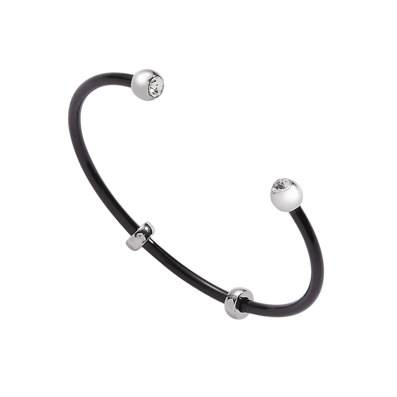 Stack it, style it, charm it. This black enamel cuff brings soft shine with bezel-set crystals at each end—plus it's designed to fit your interchangeable charms. An easy way to make your stack bright, bold, and totally you.