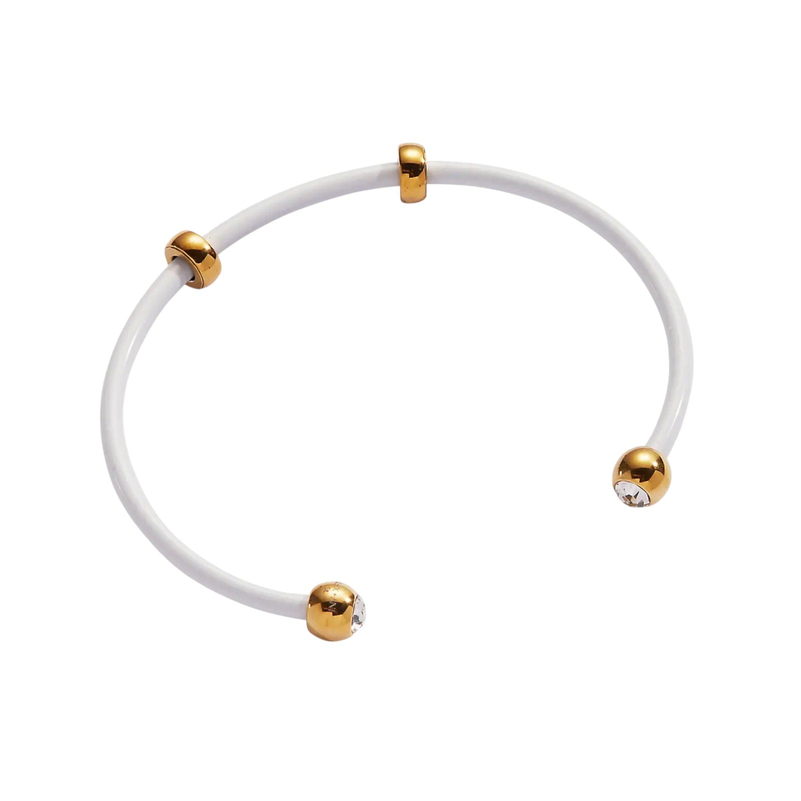 Stack it, style it, charm it. This white enamel cuff brings soft shine with bezel-set crystals at each end—plus it's designed to fit your interchangeable charms. An easy way to make your stack bright, bold, and totally you.