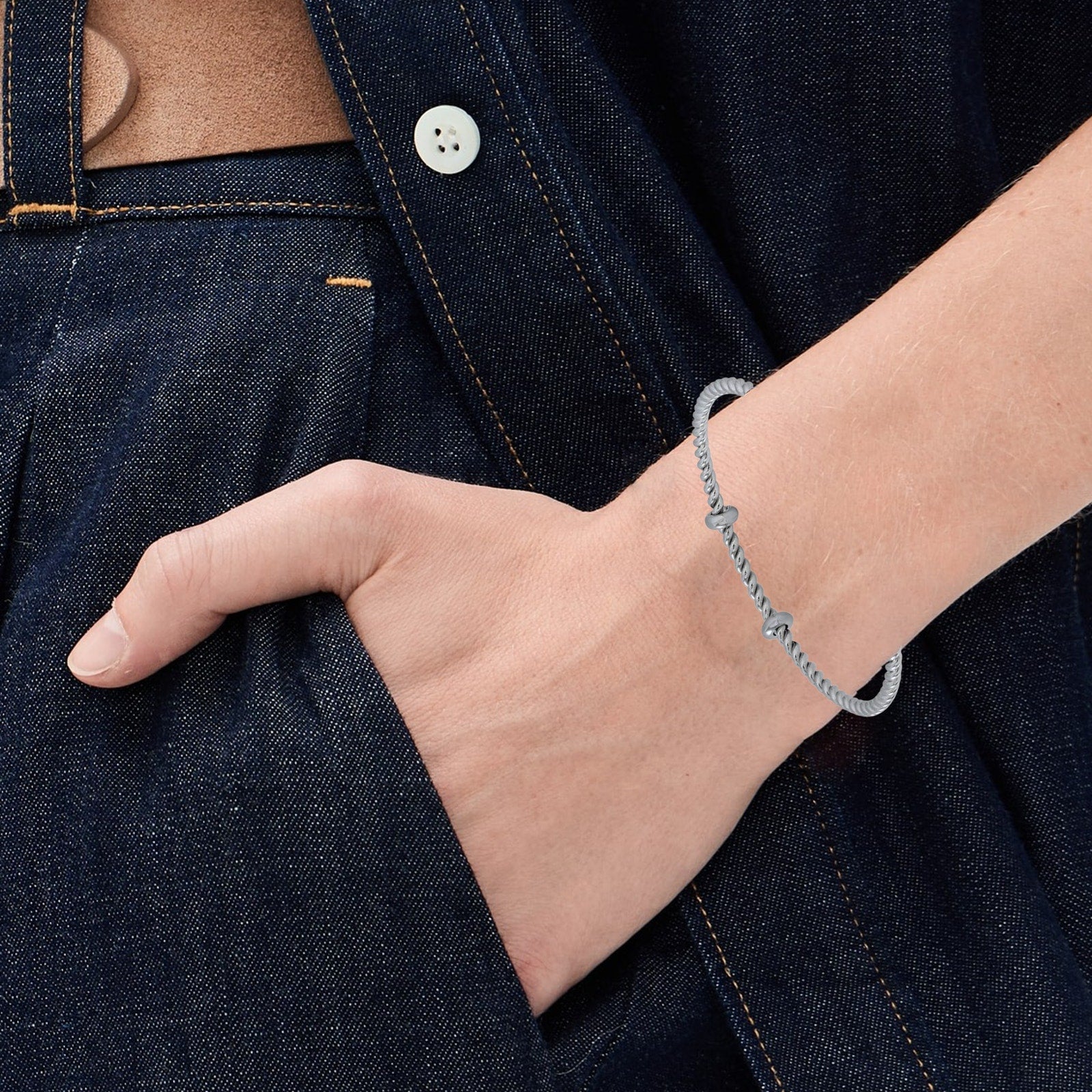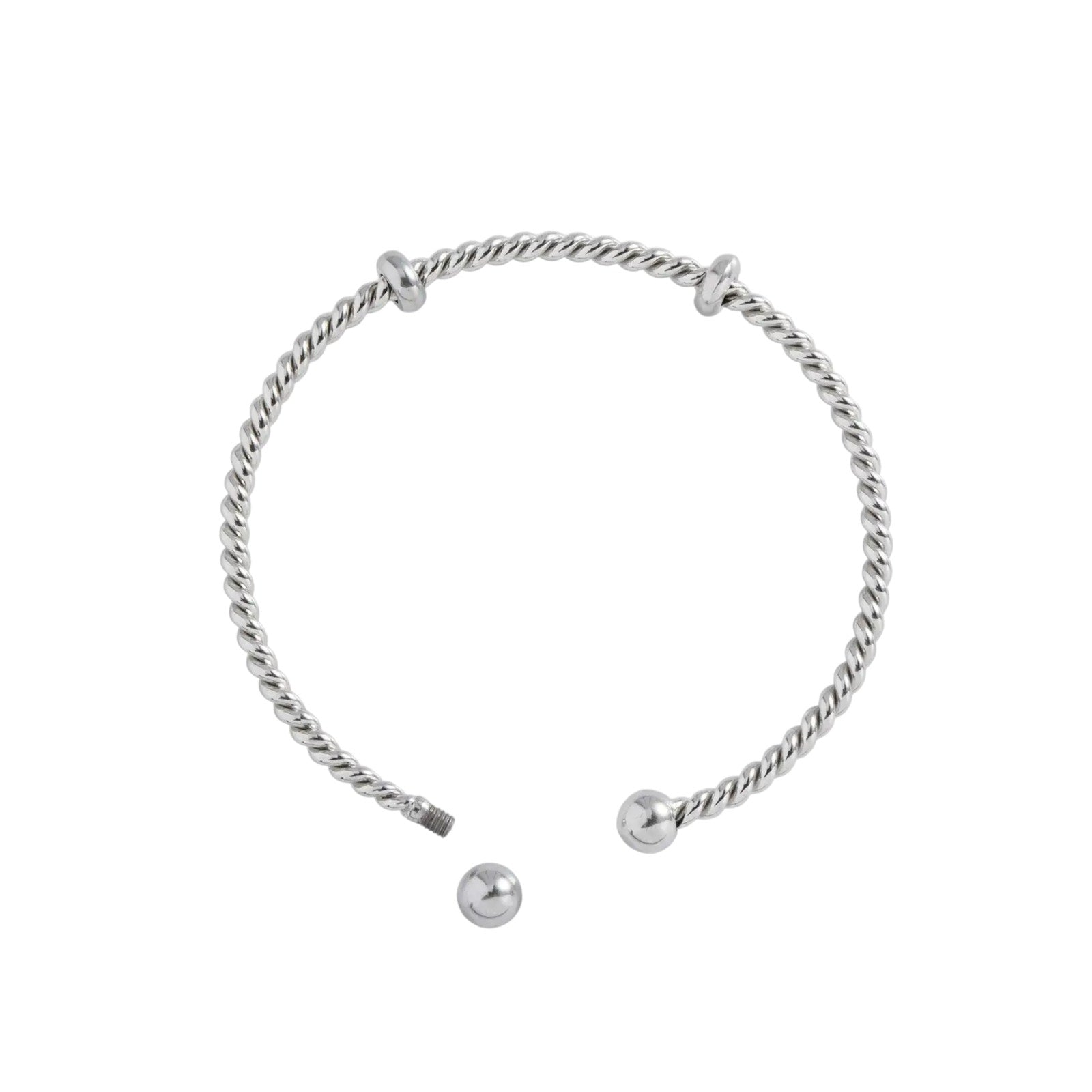 Your new favorite charm base—or your go-to textured cuff. This twisted stainless steel bracelet features removable end caps and two silicone slider beads that help keep charms in place. Wear it plain or stack on your favorite interchangeable charms to tell your story, your way. (P.S. You can remove the beads if you're going for a cleaner look.)