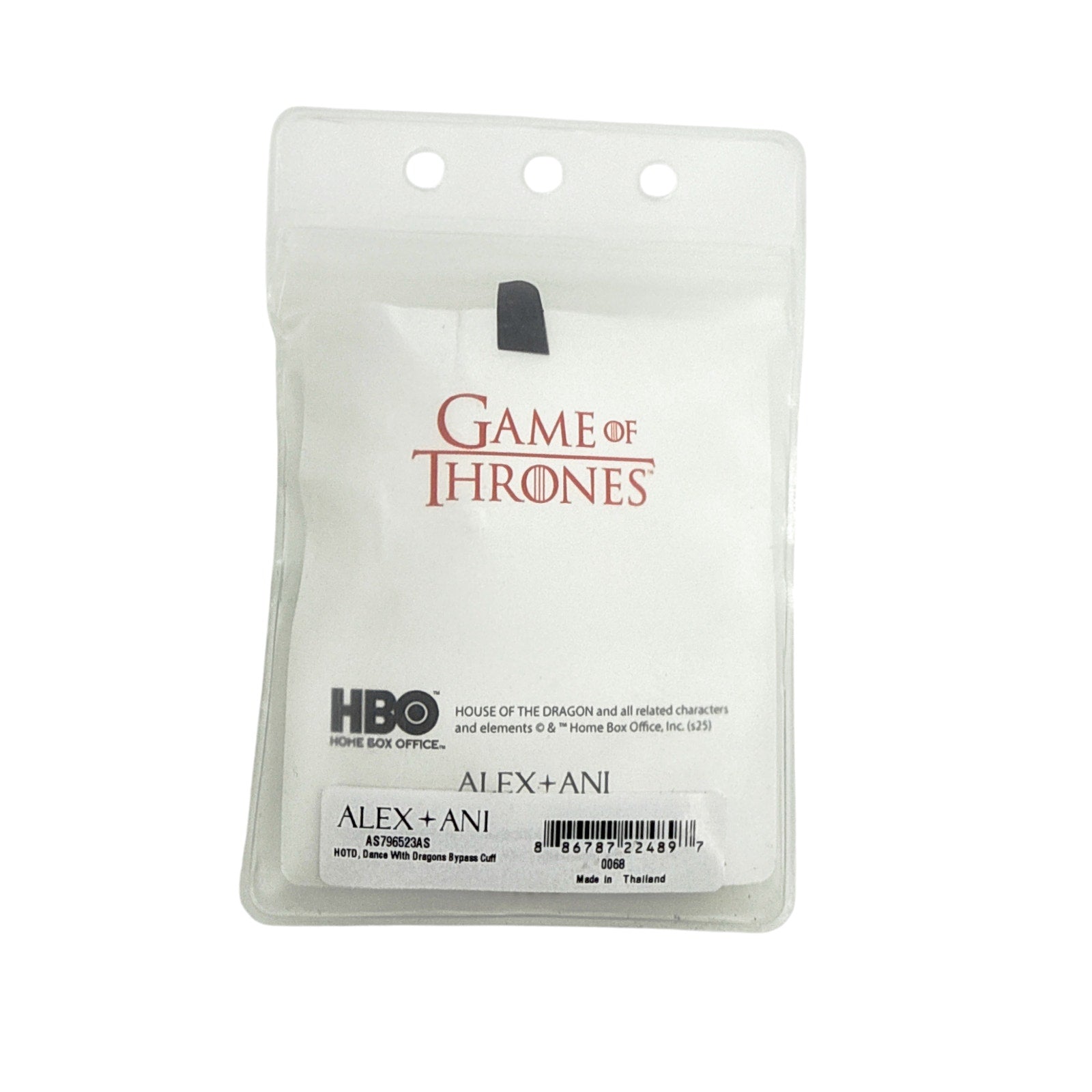 Stack on a powerful reminder of your true power with the HOUSE OF THE DRAGON™ Cuff Bracelet. This fandom bracelet features a horned dragon head motif with textured scales throughout and an interior engraving that reads, "Dance With Dragons."