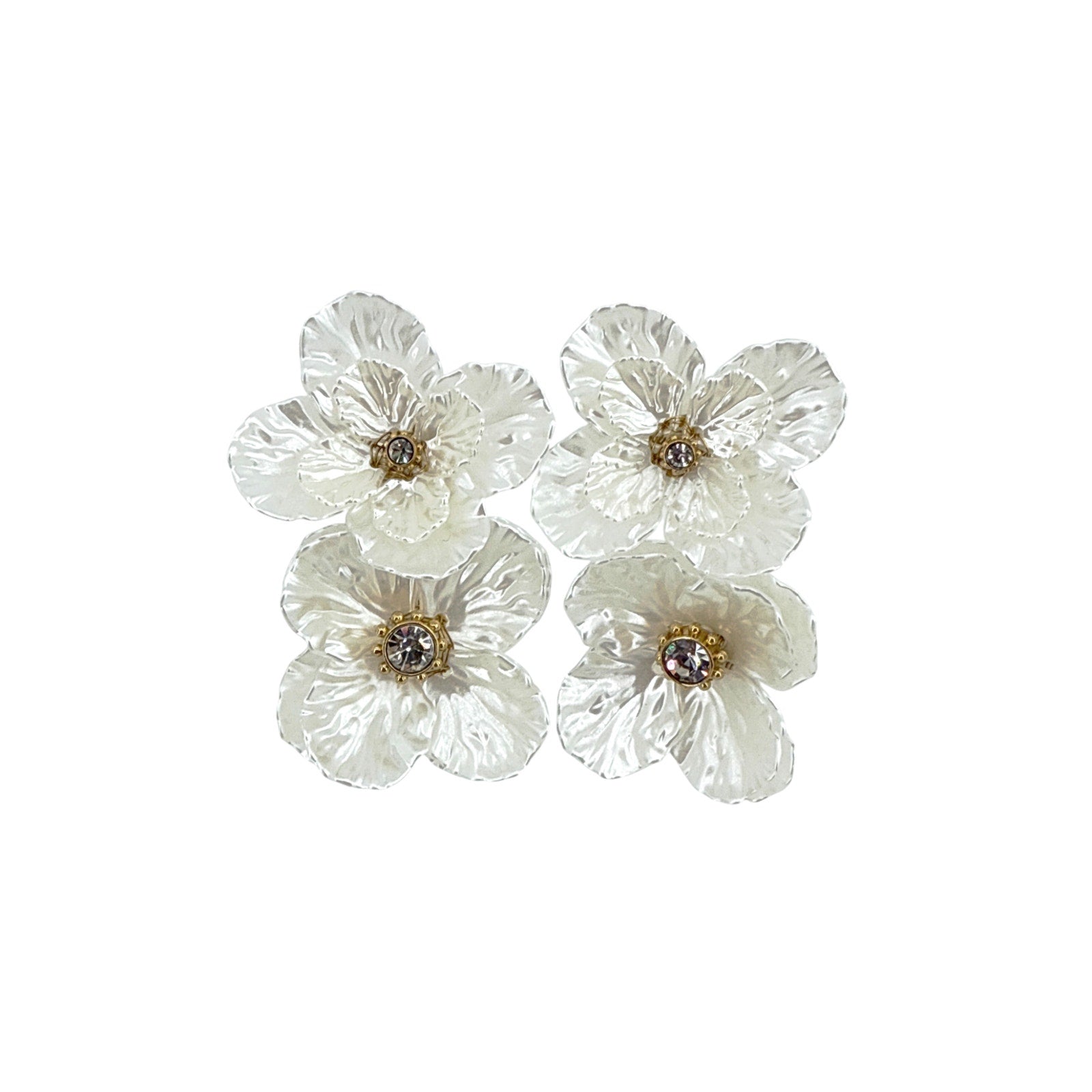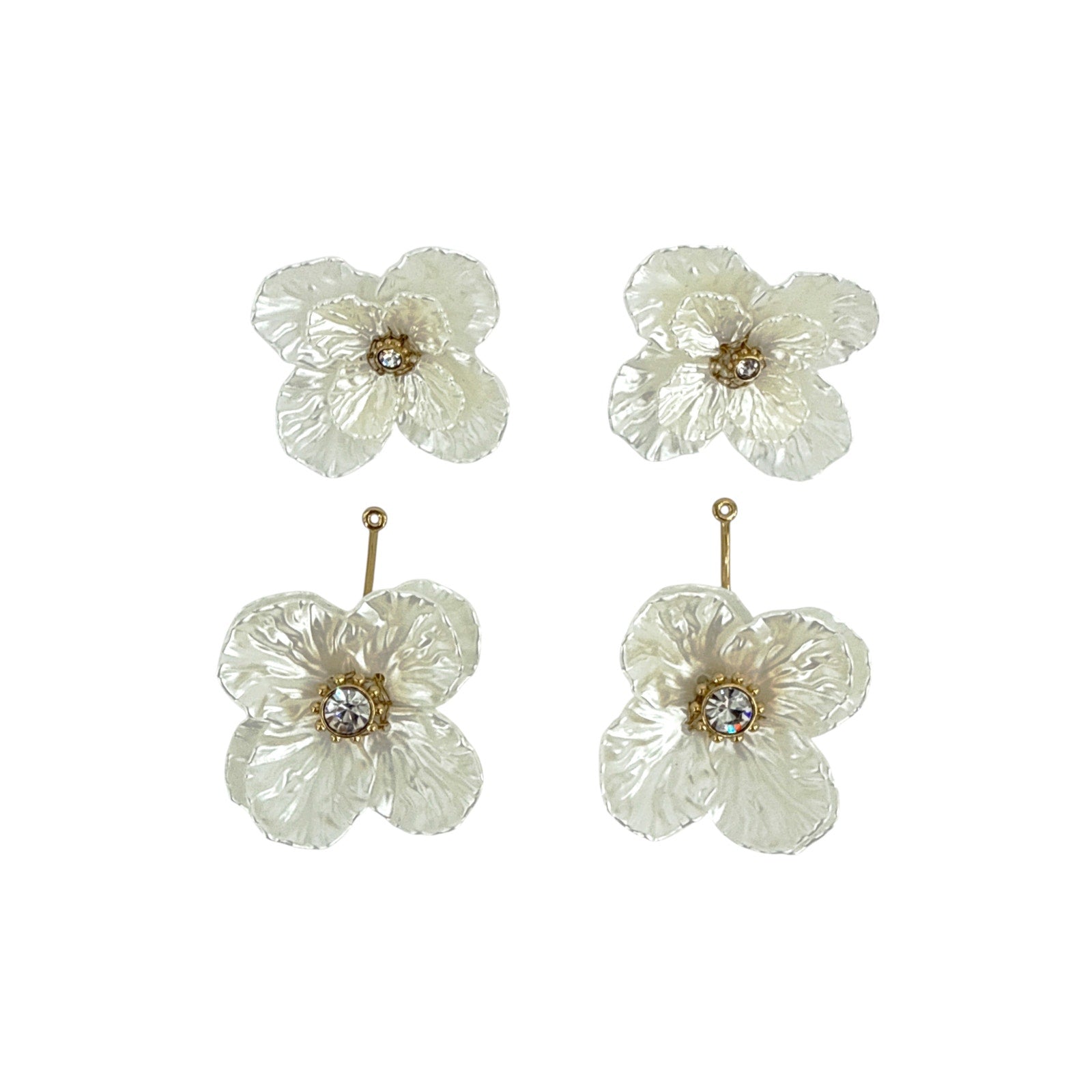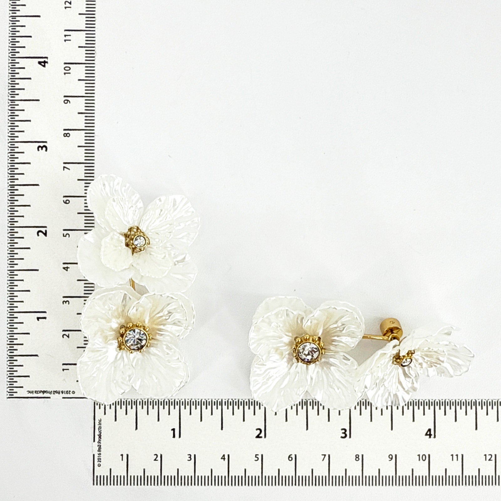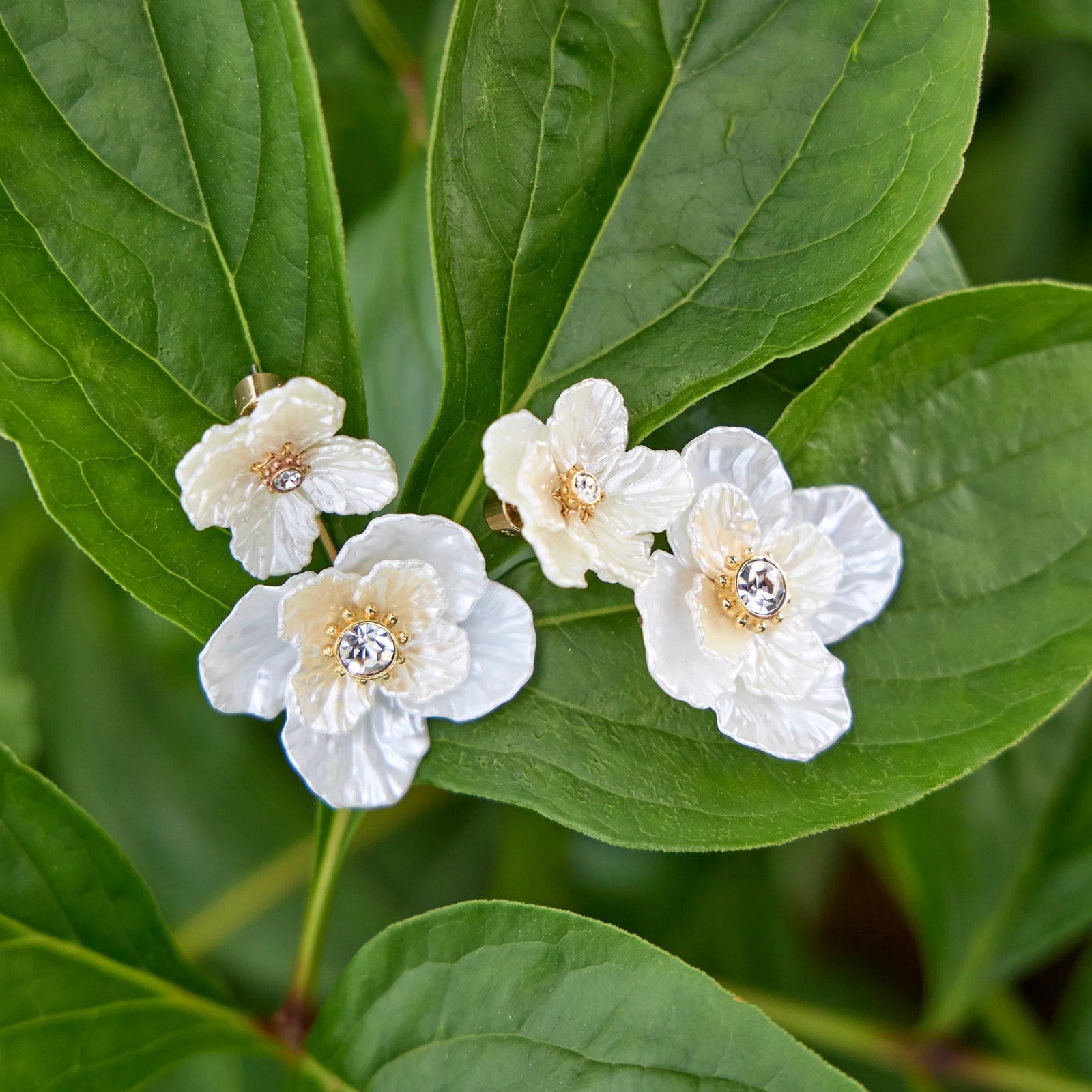 Delicate yet dynamic, these poppy-inspired earrings are a fresh take on floral statement style. Layered white petal beads with a pearlescent sheen form dimensional blooms, centered around a crystal bezel with gold-tone beaded detailing. The removable jacket design allows you to wear them two ways—studs for subtlety or full flowers for impact. Light-catching and garden-party ready, they’re as versatile as they are beautiful. Part of the NYBG® x Alex and Ani collection. This collection supports New York Botanical Garden®’s work in plant research and conservation, horticulture, and education.