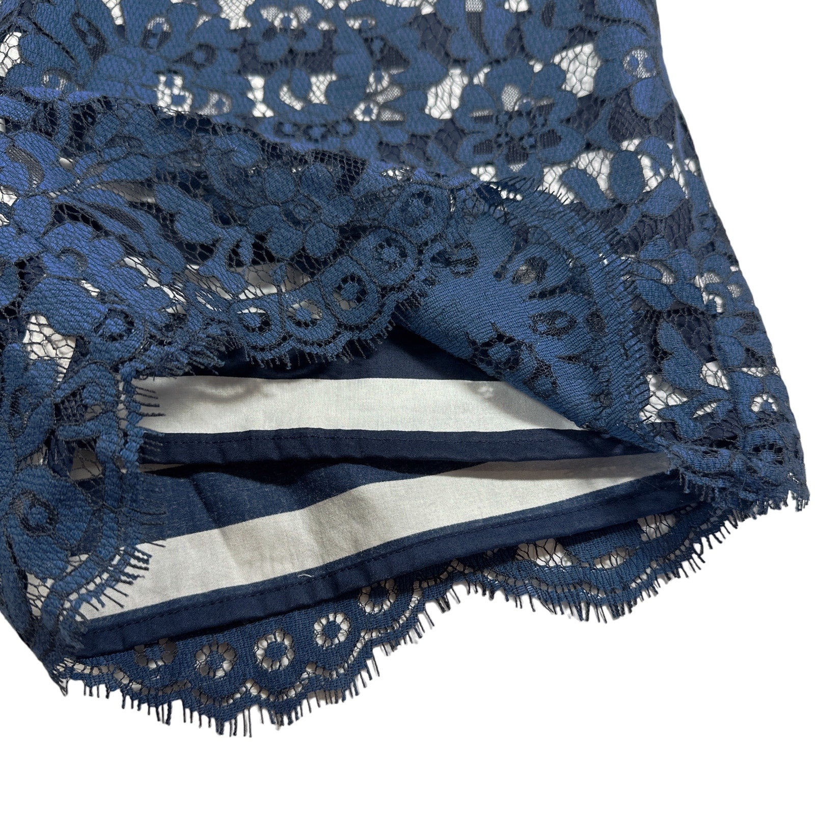 Gorgeous navy lace floral with blue & white stripe soft cotton lining Cartonnier by Anthropologie shorts with hidden side zip & POCKETS!