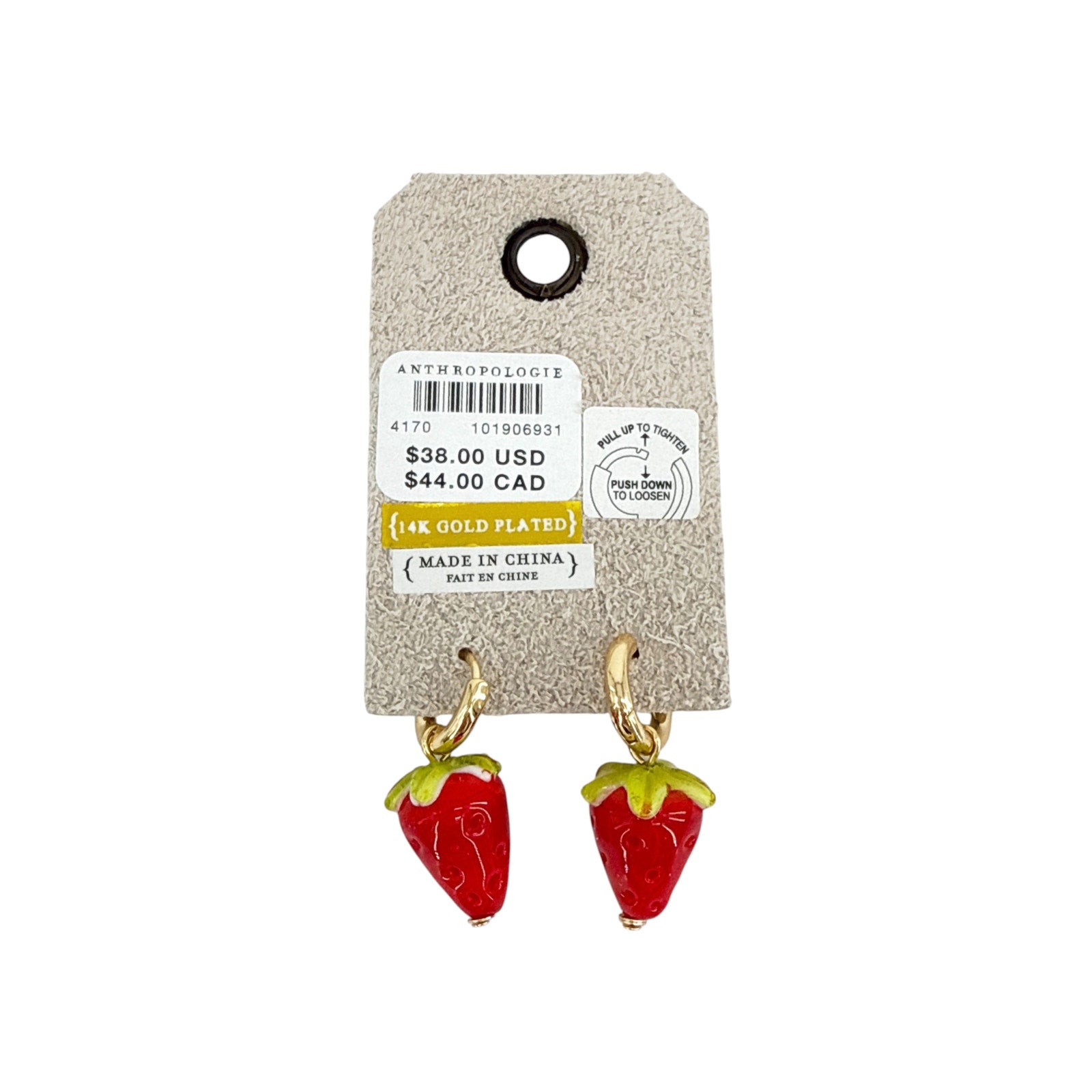 ANTHROPOLOGIE Icon Charm Huggie Hoop Earrings Strawberry