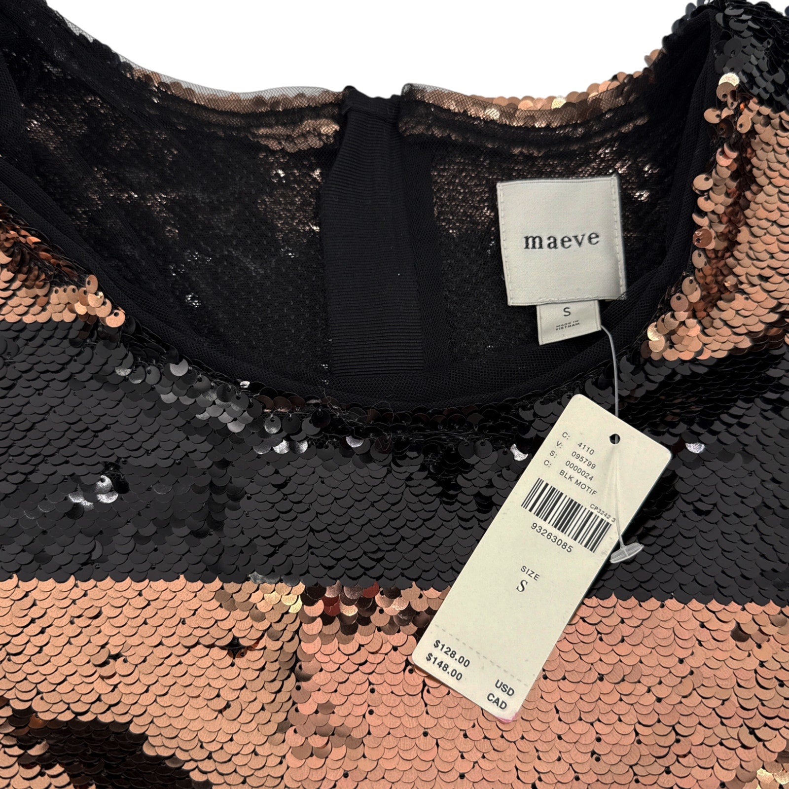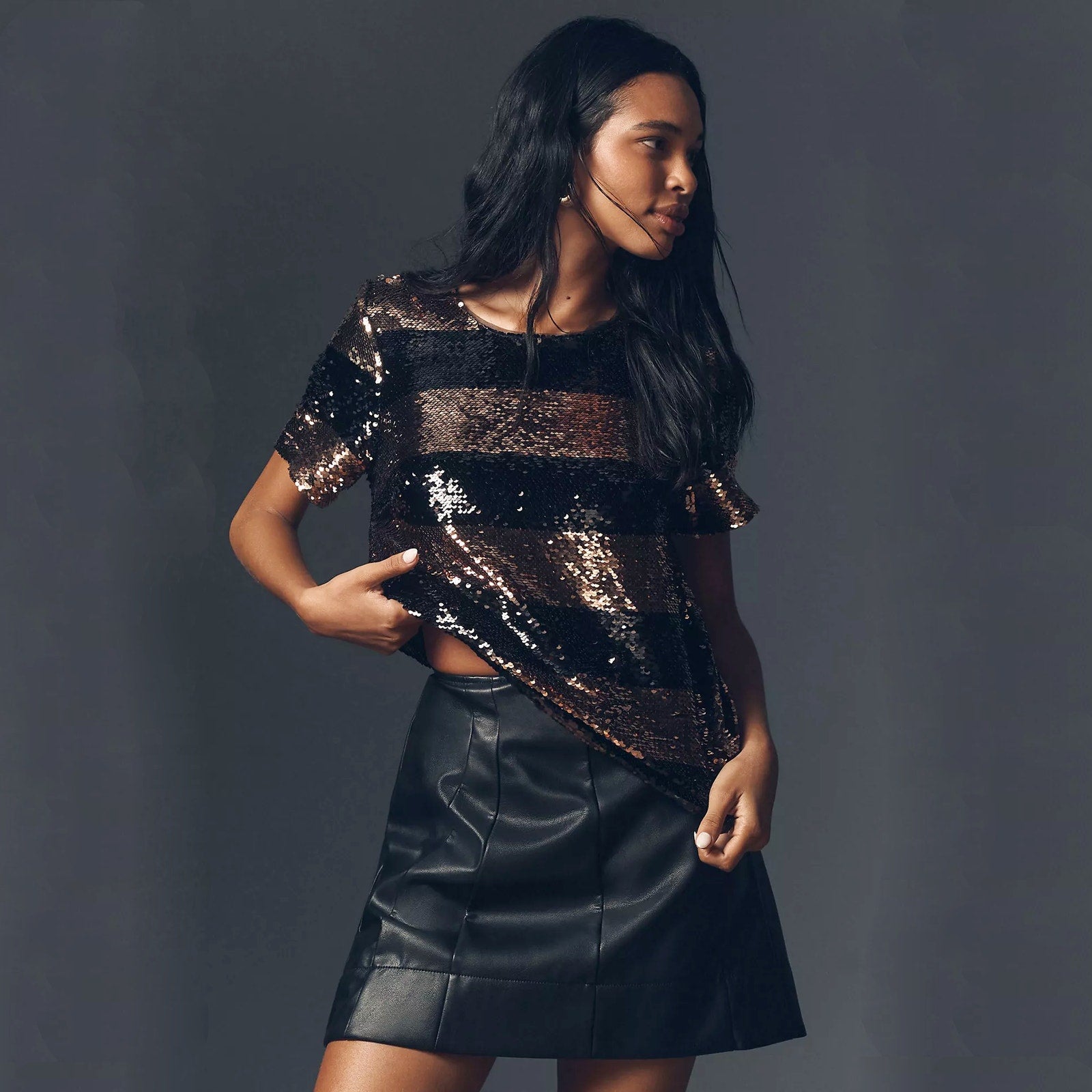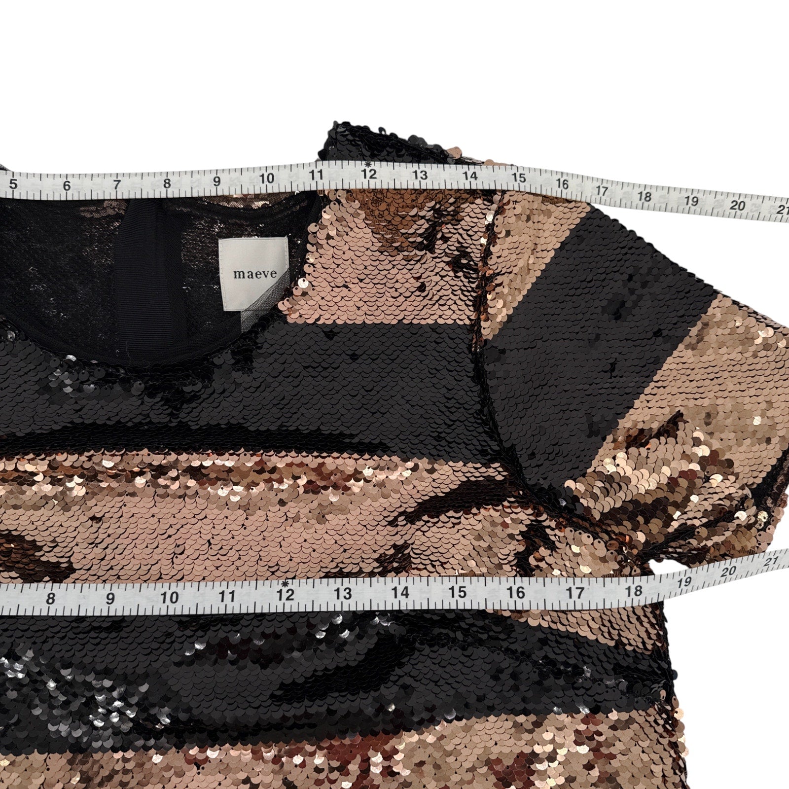 ANTHROPOLOGIE Maeve Short-Sleeve Sequin Striped Top Black S