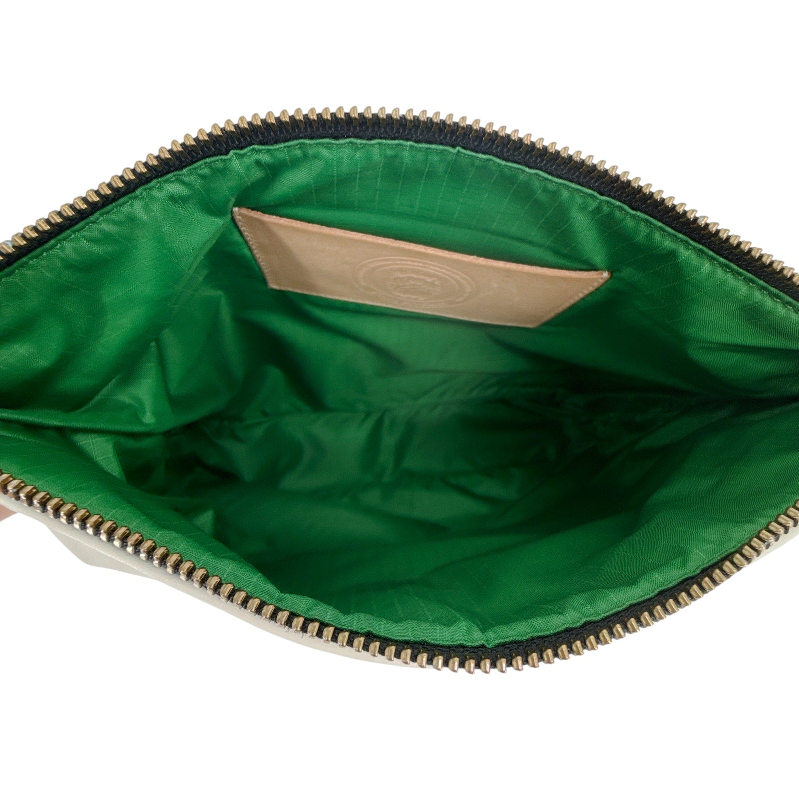 Lined with kelly green nylon