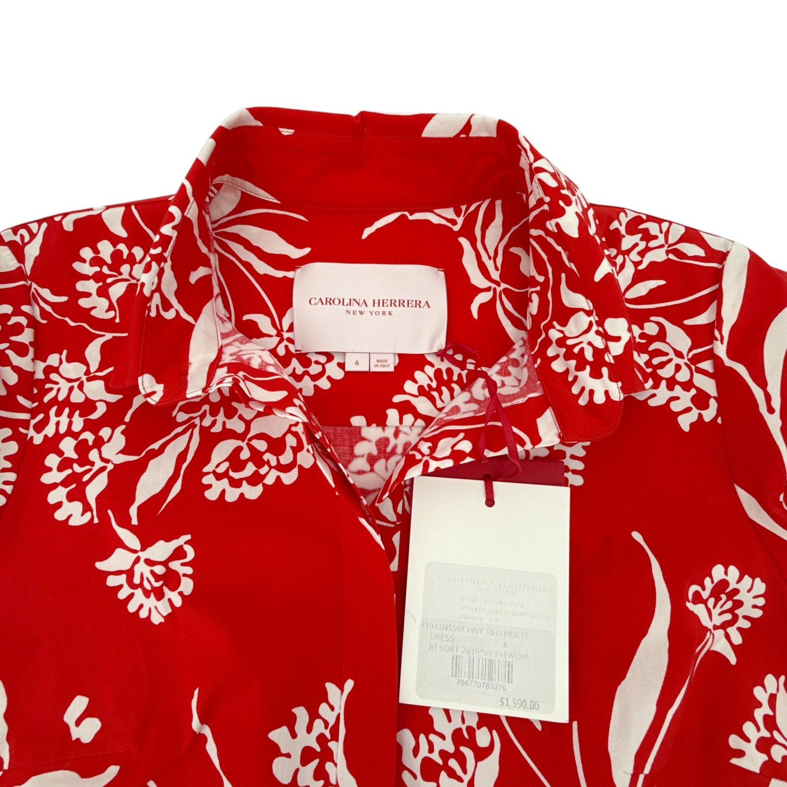 CAROLINA HERRERA Red Printed Short Sleeve Shirtdress in Red 6|M