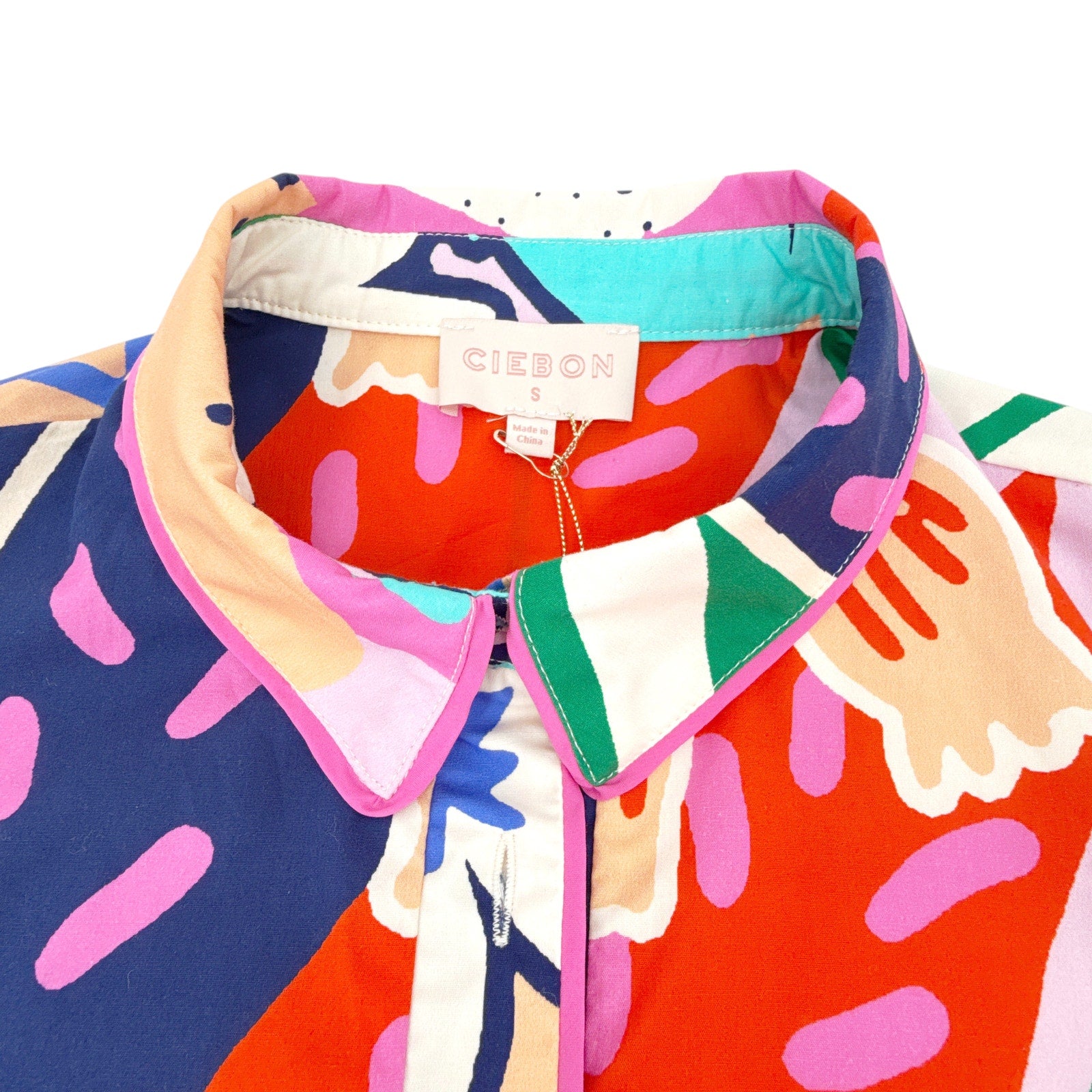 CIEBON Scarlette Tie Belt Button Front Minidress in Pink Multi S