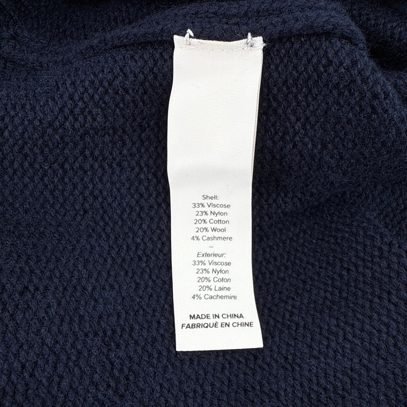 33% viscose, 23% nylon, 20% cotton, 20% wool, & 4% cashmere