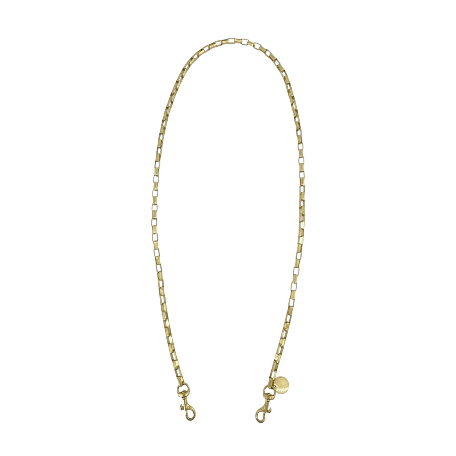 Detachable box chain crossbody strap: 45" end to end including hooks with an approx 22" drop