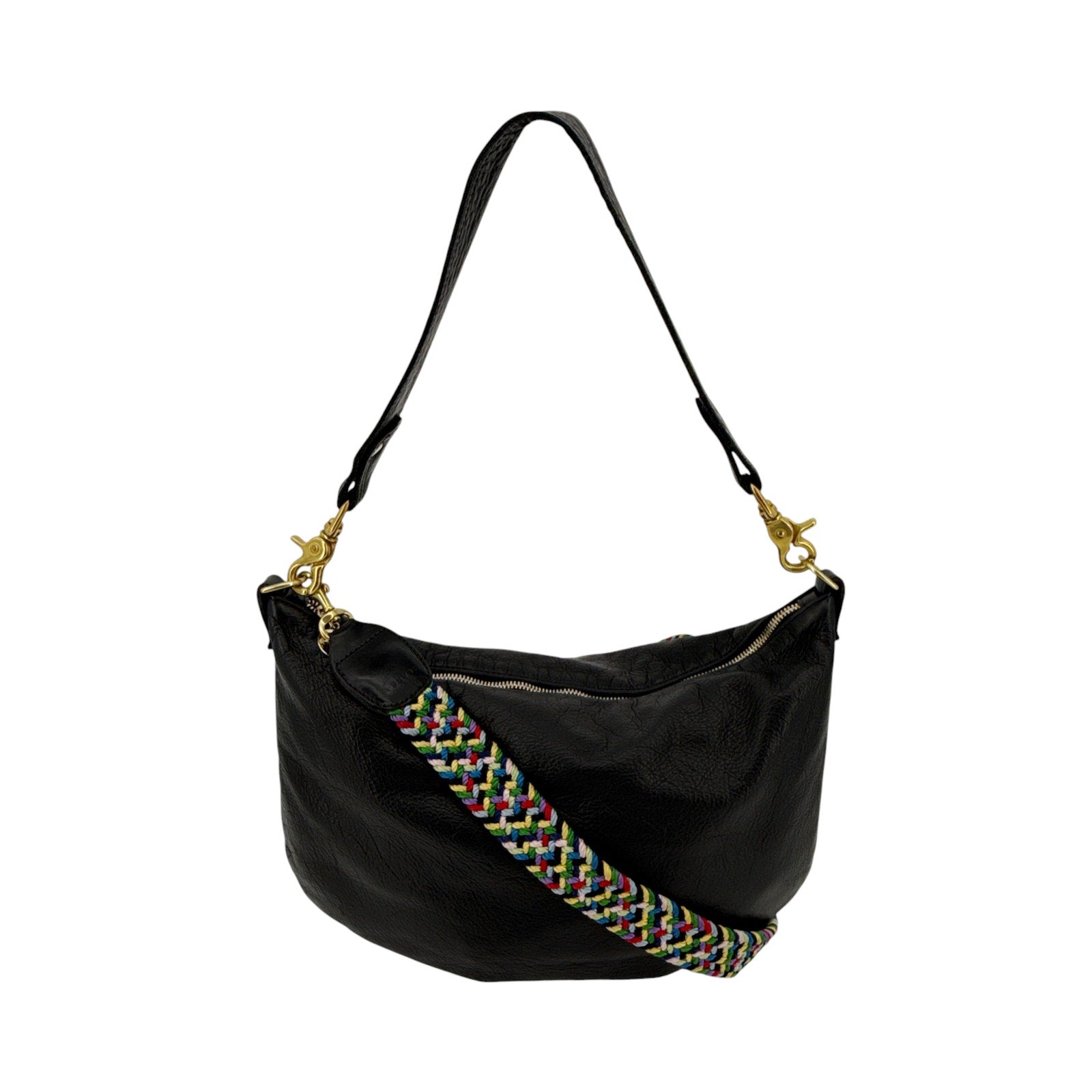 CLARE V. Moyen Messenger in Relaxed Black with Braided Crossbody Strap